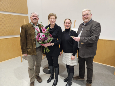 BJM Willi Renner und sein Stellvertreter Mario Schuh bedankten sich bei ihr für die gute Zusammenarbeit und die fachlichen und sachlichen Gespräche. Als kleines Dankeschön überreichten sie Salzer einen Blumenstrauß und ein Wolffigur (fällt natürlich unter die Pagatelgrenze).